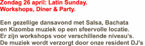 Home Aanmelden: Proeflessen Klik hier voor meer info: Latin Party’s – Koop hier je ticket: Latin Sunday 26 april 2026 – Latin Entertainment Productions Klik hier voor meer info Klik hier voor meer info
